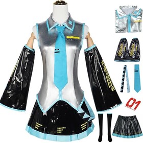 Windskids Anime Miku Kostüm Damen Cosplay Virtual Idol H'atsune M'iku Komplett PU JK Uniform Set mit Kopfhörer Tiara für Fancy