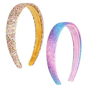 Thinp 2 Stück Glitzer Stirnbänder für Mädchen,Kinder Haarreifen Mädchen,Glitzernde Breite Dicke Stirnbänder,Bunte Rutschfestes