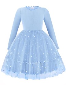 Arshiner Mädchen Kleider Tüll Glitzer Langarmkleid Kinder Faltenkragen A-Linie Partykleid Festliche Herbst Winter Freizeitkleid