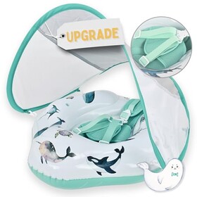 EDWEKIN® Baby Schwimmring 2025 | TÜV-geprüfte Premium-Schwimmhilfe mit UPF50+ Sonnendach & handgemalten Motiven | Für 6–36 Mona
