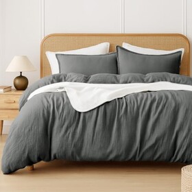 Sedefen Doppelte Musselin Bettwäsche 200x200 Baumwolle,Dunkelgrau Bettwäsche Sets Anthrazit ÖKO-TEX Bettwäsche mit Reißverschlu