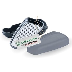 Chefkoch trifft Fackelmann Parmesanreibe mit Behälter – Edelstahlklinge, 2in1 Reiben & Aufbewahren, spülmaschinengeeignet