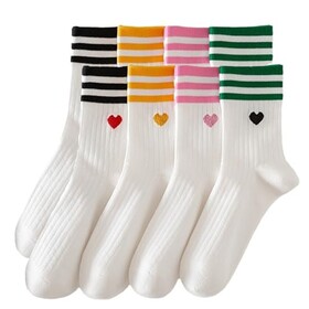 GFTCGK 4 Paar Tennissocken Damen 39-42, Funny Socken mit Herz Motiv & Bunt Streifen, Bequeme & Atmungsaktive Baumwoll Sportsock
