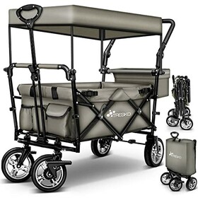 TRESKO® Bollerwagen faltbar mit Dach | Handwagen mit 2x3-Punkt Gurtsystem | Gartenwagen klappbar bis 80 kg | Transportwagen mit