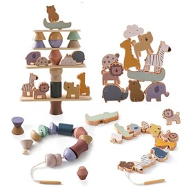 Smartwo Fädelspiel ab 2 Jahre, Holzspielzeug für Stapelspiel, Montessori Motorikspielzeug für Kleinkinder, Bauklötze in Tiere F