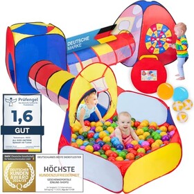 all Kids United® Spielzelt mit Tunnel, Bällebad, Krabbel-Tunnel & mehr XXL Spielland 5-teiliges Pop-Up Spiel-Haus mit Tasche