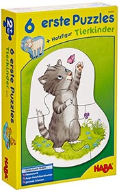 HABA Puzzle Tierkinder – 6 erste Puzzles ab 2 Jahren mit großen Teilen – Fördert Feinmotorik & Tiererkennung – Mit Holzfigur zu