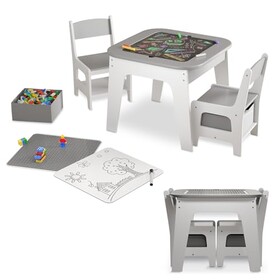 Juskys Kindersitzgruppe Milou - Set mit 2 Stühlen & 1 Tisch - Kindertisch Holz - Spieltisch mit Stauraum - Sitzgruppe für Kinde