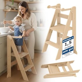 Bellabino Tay Lerntrum ab 1 Jahr – Learning Tower 2-Fach höhenverstellbar & klappbar – Lernstuhl in Natur für Kinder – Montesso