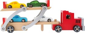 small foot Autotransporter aus Holz, mit abnehmbarem Anhänger und 4 bunten Autos, für Kinder ab 3 Jahren, 4222