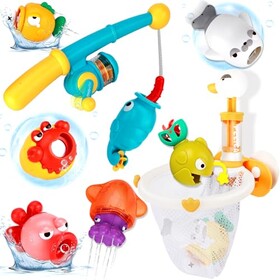 VBACALA Badespielzeug ab 3 Jahre,Badewannenspielzeug Angelspiel,Badespielzeug mit Angelstäbe Wasserpistolen Fischernetz Magnet