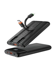 VEGER Power Bank 10000mAh Klein, 22.5W Schnellladung PowerBank mit Integriertem USB-C Kabel, Externe Handyakkus 4 Ausgänge 3 Ei