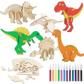 Dinosaurier Holz Bastelset Kinder, 24 Stück Dino Bastelset zum Bemalen und Basteln DIY, 3D Puzzle Dino Holzbastelsets Kindergeb