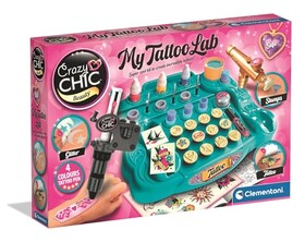 Clementoni Crazy Chic Tattoo-Studio - Temporäre Tattoos für Kinder ab 6 Jahren - Kreativ-Spielzeug inkl. Körperstift, Körperfar
