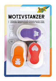 folia 7019 - Motivstanzer, Motivlocher, 3er Set, Herz, Schmetterling und Bär