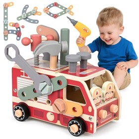 Vanplay Werkzeugkoffer Kinder, Kinderwerkzeug Holzspielzeug Montessori Spielzeug ab 3 4 5 Jahre Kinderspielzeug Werkzeugkasten