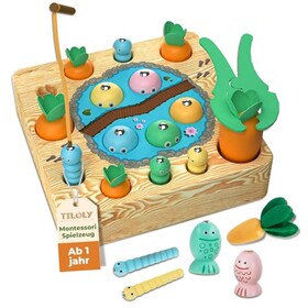 Tiloly Montessori Spielzeug ab 1 Jahr 2in1 Karottenspiel & Angelspiel, Holzspielzeug ab 1 Jahr Activity Spiel - Motorikspielzeu