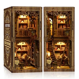 Book Nook Kit - - DIY Miniatur Holzpuzzle | Vintage Book Collection Room mit LED-Lichtern | 3D Puppenhaus Buchstütze für Büche