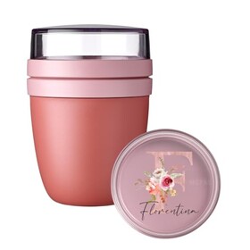 Mepal Lunch Pot personalisiert, To Go Müslibecher Snackbox Ellipse mit Name, bunter Blumen Aufdruck floraler Buchstabe Initiale