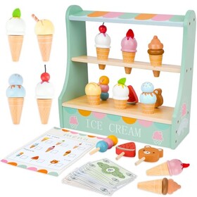 Eisdiele Kinder Holz, Eisladen EIS Holzspielzeug für Kinder, Kinderküche & Kaufladen Zubehör,Eisdiele für Rollenspiele, Montess