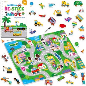 Wiederverwendbares Jelly Sticker Buch, 53 Dicke Jelly Sticker von Fahrzeugen, Wasserdichte Gel-Haftaufkleber, Transport-Themen