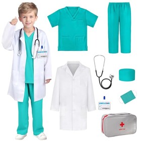Lotvic Arzt Kostüm Kinder, Arztkittel Kinder Laborkittel, Arztkoffer Kid Kostüm, Arztkoffer mit Stethoskop, Erste-Hilfe-Kasten,