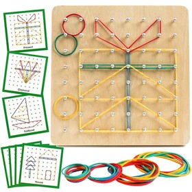 YIQOGAME Montessori Geobrett aus Holz mit Gummibändern Lernspielzeug für Kinder ab 3 4 5 Jahren STEM Spielzeug für den Unterric
