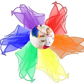 FUKPO 6 Stück Chiffontücher Set, Square Jongliertücher Performance Seide Schals Bunt Tanz Tücher Kinder Baby Kindergarten