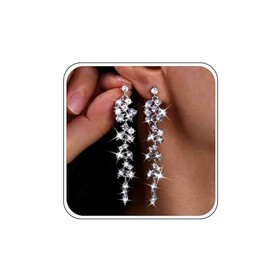 Braut Hochzeit Strass Ohrringe Silber Glitzer Kristall Quasten Lange Ohrringe Hängend Blatt Bräute Kronleuchter Cz Drop Brautju