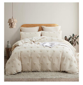 Amazon „ Bettwäsche 135x200 cm mit Handgemacht Stickerei Beige Getuftet Boho Bettwäsche Set Vintage Bettbezug Shabby Chic Gewaschene Mikrofaser 1 Deckenbezug mit Reißverschluss 1 Kissenbezug 80x80cm“