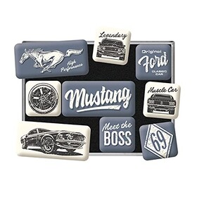 Nostalgic-Art Retro Kühlschrank-Magnete, 9 Stück, Ford Mustang – The Boss – Geschenk-Idee für Ford-Zubehör Fans, Magnetset für