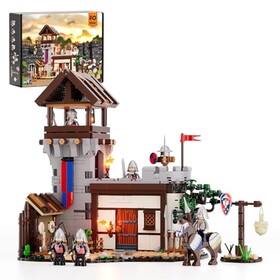 FUNWHOLE Mittelalterlicher Trainingsgelände Beleuchtung Bauklötze Set, 964 Pcs Mittelalter Burg Klemmbausteine Stadttor Castle
