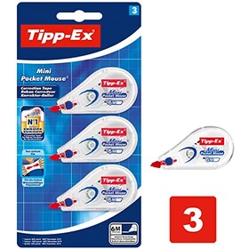Tipp-Ex Korrekturroller Mini Pocket Mouse, 6m x 5mm, 3er Pack, Ideal für das Büro, das Home Office oder die Schule
