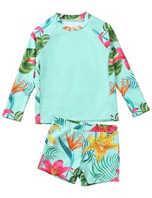 Borlai Mädchen 2 Stück Rash Guard Badeanzug mit Langen Ärmeln Tankini für grüne Blume 5-6 Jahre