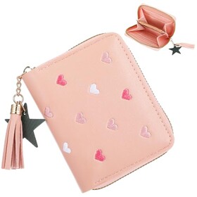 JIEYAO Süße Portemonnaie Mädchen,Kleines Portmonee Kinder PU Leder Mini Geldbeutel mit Sternquaste Anhänger und Reißverschluss