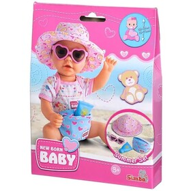 Simba 105560005 - New Born Baby, Puppen Sommer Set, Sonnenhut, Brille und Cremetube, mit cooler Bauchtasche, Rosa