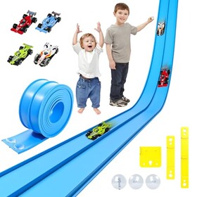 Doloowee 3.9M Geschwindigkeitsstrecke Rennstrecke, Flexible Rennbahn mit Saugnäpfen, DIY-Autobahn mit 4 Autos, Spielzeug für Ki