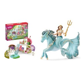 SCHLEICH 42445 BAYALA Glitzerndes Blütenhaus mit Einhörnern & BAYALA 70594 Meerjungfrau Eyela Figur und Unterwasser Einhorn Spi
