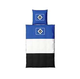 HSV Hamburger SV Bettwäsche ** Blockstreifen, 135 x 200 cm, 100% Baumwolle, Reißverschluss