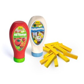 Erzi 03090 Kaufladenartikel für Kinder aus Holz, Set Pommes, Ketchup und Mayonnaise, Rollenspiele