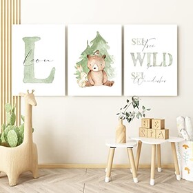 Pandawal Bilder Kinderzimmer Babyzimmer Waldtiere im Wald Deko Poster Set 3er Tiere für Kinder Junge I Mädchen mit Name und Spr