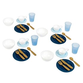 Theo Klein Geschirr-Set I Robustes und schickes Spielgeschirr für 4 Personen I Inkl. Bowls und goldfarbenem Besteck I Spielzeug