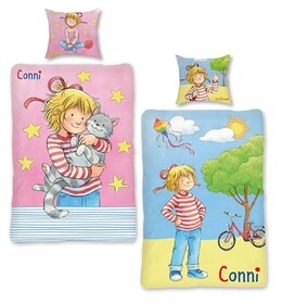 Conni Bettwäsche 135x200 80x80 Kissen-Bezug [mit extra Beutel] 100% Baumwolle Bettbezug mit Reißverschluss | Kinder-Bettwäsche