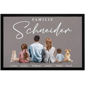 SpecialMe® Fußmatte Familie mit Namen Figuren personalisierbar 1,2,3,4 Kinder Katze Hund Watercolor Aquarell rutschfest & wasch