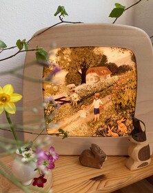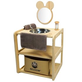 Miloow Montessori Kinderwaschbecken Kinderwaschtisch Holz Bärenspiegel, Sanduhr, Handtuch, Korb Aufbewahrung. Fördert Selbstst