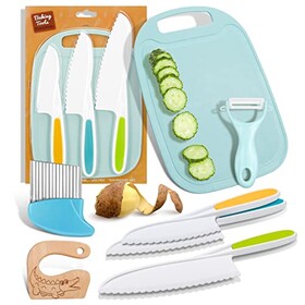 Veraing 7 Stück Kinderküchenmesser Set, Kindermesser Montessori Messer Schäler Schneidebrett Sicherheit Kochmesser Küchenmesser