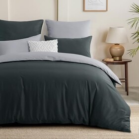 Aisbo Bettwäsche 220x240 Baumwolle Anthrazit Grau - Bettwäsche-Sets 220x240 cm Wendebettwäsche 3teilig mit 2 Kissenbezüge 80x80