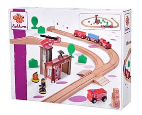Eichhorn Schienenbahn 100006205 Feuerwehr-Set, 33 teilig, 295 cm Streckenlänge, FSC zertifiziertes Buchenholz, verbaubar mit An