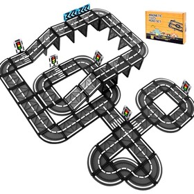 BuzzoXerex Magnetische Bausteine Straßenset, 70PCS Magnetische Fliesen Stadtstraßen, Magnetbausteine Straßenaufsatz-Set Lernakt