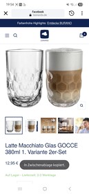 LEONARDO HOME GOCCE Kaffeeglas • 6tlg. Set • 3 Korkuntersetzer • 3 Kaffeebecher • Cappuccinoglas für Siebträger • Spülmaschinen